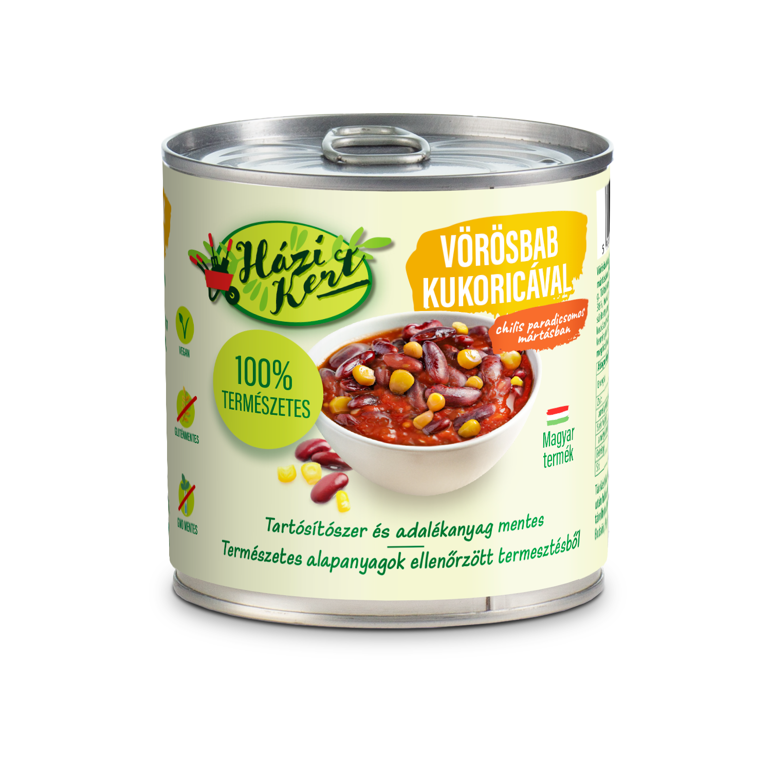 csemege kukorica 15%, sűrített paradicsom, cukor,